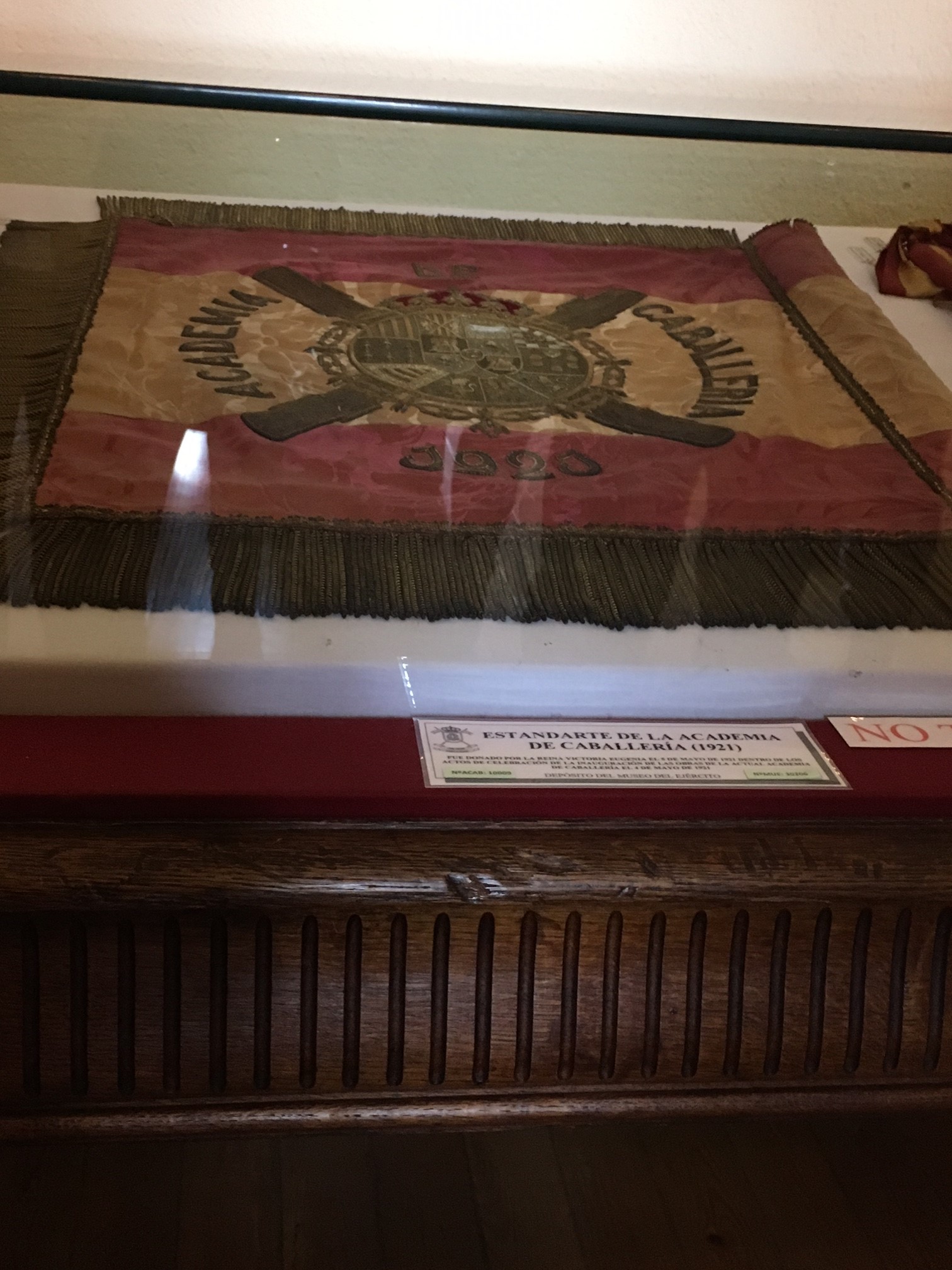 Las piezas más emblemáticas descansan en la Sala de Honor: el antiguo estandarte del centro, bordado por la reina Victoria Eugenia, el mismo que besaron los caballeros alféreces desde 1940 y hasta 1983; o la Gran Cruz de San Fernando que se le concedió al general Diego de León antes de ser fusilado.