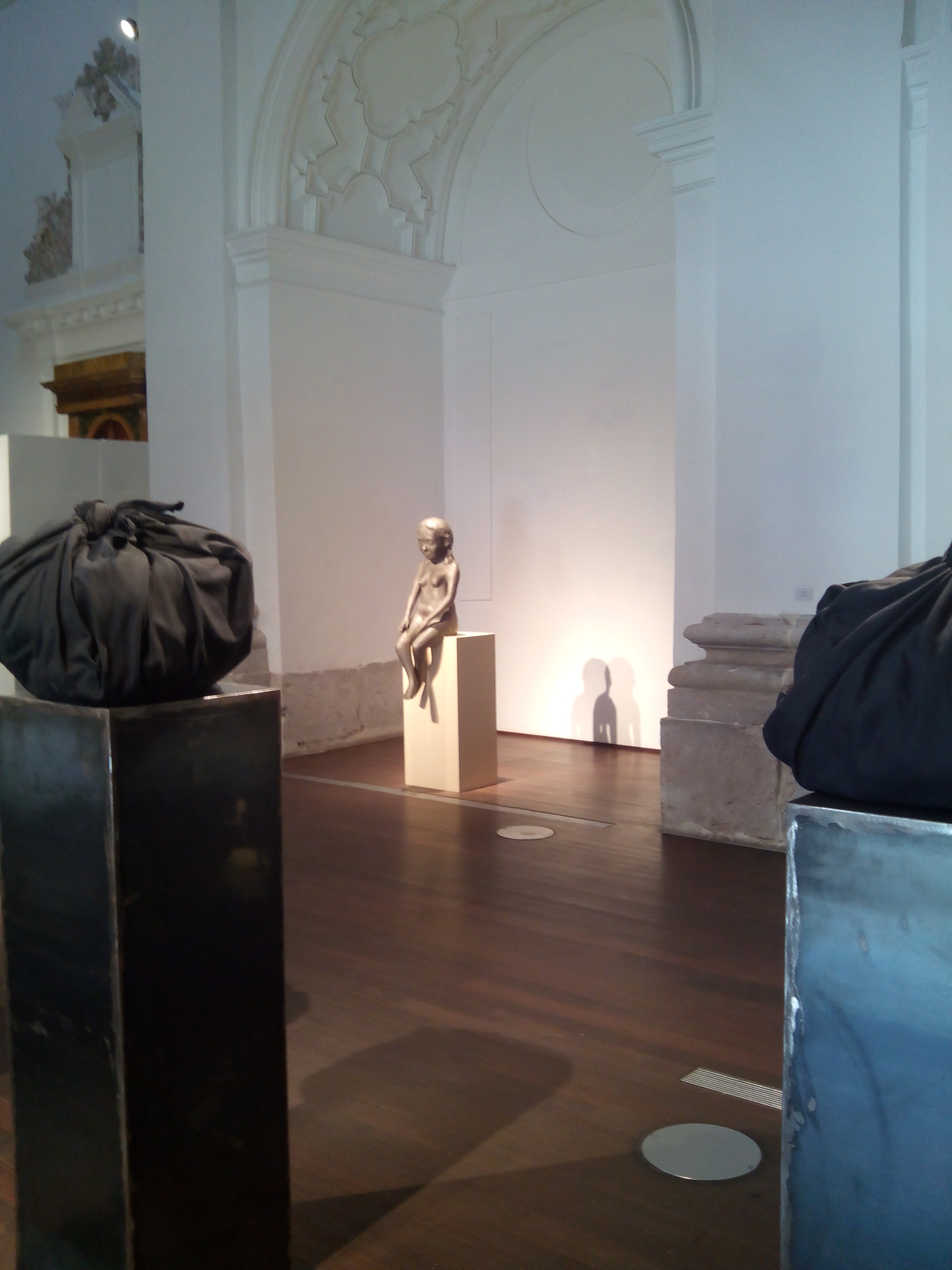De vuelta a la nave central, la presencia de Kounellis separa las obras de Kiki Smith de las de Rebeca Horn. Si en el Museo de la Pasión la pieza de Smith destacaba por su tamaño y su material, la escultura que aquí se encuentra parece opuesta: serena, mate, recatada, la reproducción de una mujer –Seated nude– en línea con la exaltación de la figura femenina tan presente en su carrera.